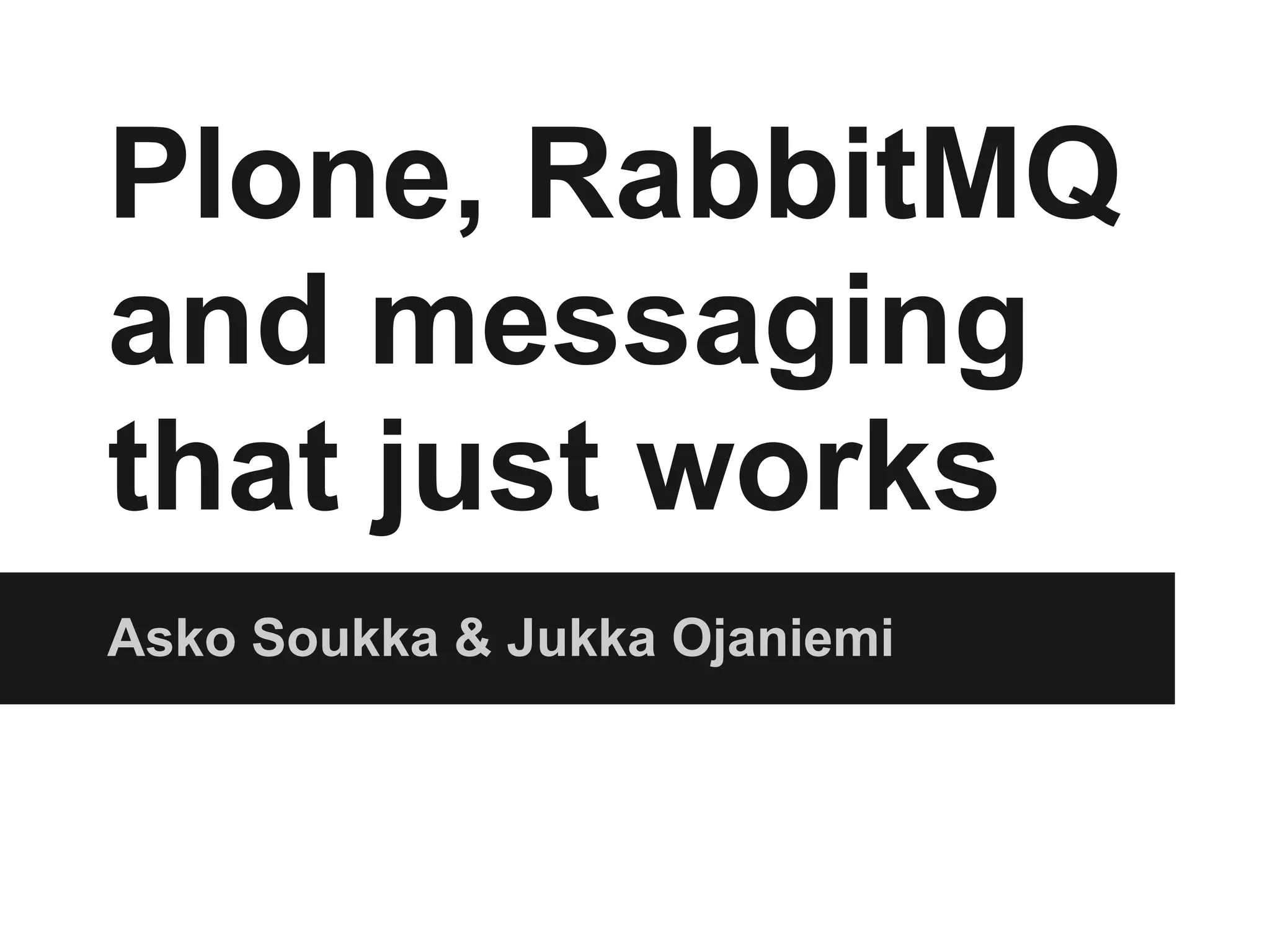 This document discusses using RabbitMQ and message queues with Plone. It provides an overview of message queues and how they can provide reliable, scalable solutions for running asynchronous tasks and integrating services. It introduces AMQP and describes how collective.zamqp can be used to easily produce, consume, and handle messages with Plone. Examples are given of using collective.zamqp to implement publish/subscribe and request/response patterns between Plone sites.