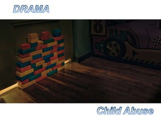 The document discusses the issue of child abuse, emphasizing its prevalence and the long-lasting emotional effects on victims. It outlines a film opening that aims to depict the struggles of a teenager aged 13-14 living with an alcoholic mother in an inner-city setting, aiming to raise awareness among viewers aged 15 and older. The document details the technical aspects of filming, including shot types, location challenges, and character development relevant to the drama genre.