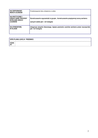 OPIS PLANU LEKCJI/ PRZEBIEG