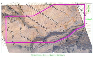 The document is an operation plan and proposed expansion for the Ellett Rock Quarry located near The Dalles, Oregon. It provides details on the quarry's history, location, topography, mining areas, and plans to expand operations while meeting scenic resource protection requirements. The plan proposes expanding mining into 4 additional areas totaling 4.44 acres, while reclaiming 2.08 acres to maintain a total operational area of 13.11 acres. Screening methods like retaining landforms and planting trees are intended to ensure the expanded quarry remains visually subordinate from key viewing areas.