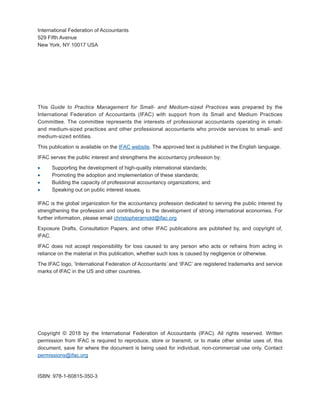 This document discusses guidelines for client relationship management from the International Federation of Accountants (IFAC). It provides an overview of the importance of knowing clients and managing client relationships. Effective client relationship management is important for client retention, can reduce the impact of price as a factor, and increases the value of an accounting firm. The document recommends tools for classifying, meeting expectations of, and providing a full range of quality services to clients.