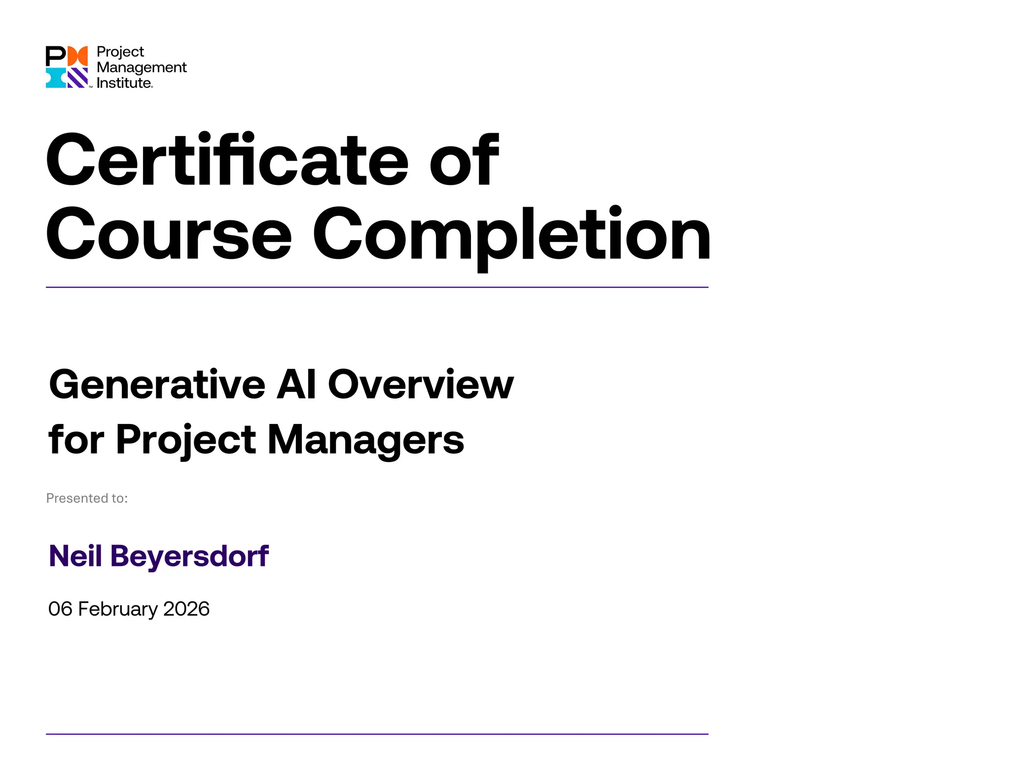 Generative AI Overview for Project Managers is a hands-on microlearning course for project practitioners that will empower you to harness the power of AI in your project work. Throughout this course, you’ll actively explore and apply generative AI techniques. Watch skilled project managers discuss practical applications of generative AI in real-world scenarios. By the end of this course, you’ll have the confidence to integrate generative AI into your projects, enhancing productivity and achieving exceptional outcomes.
