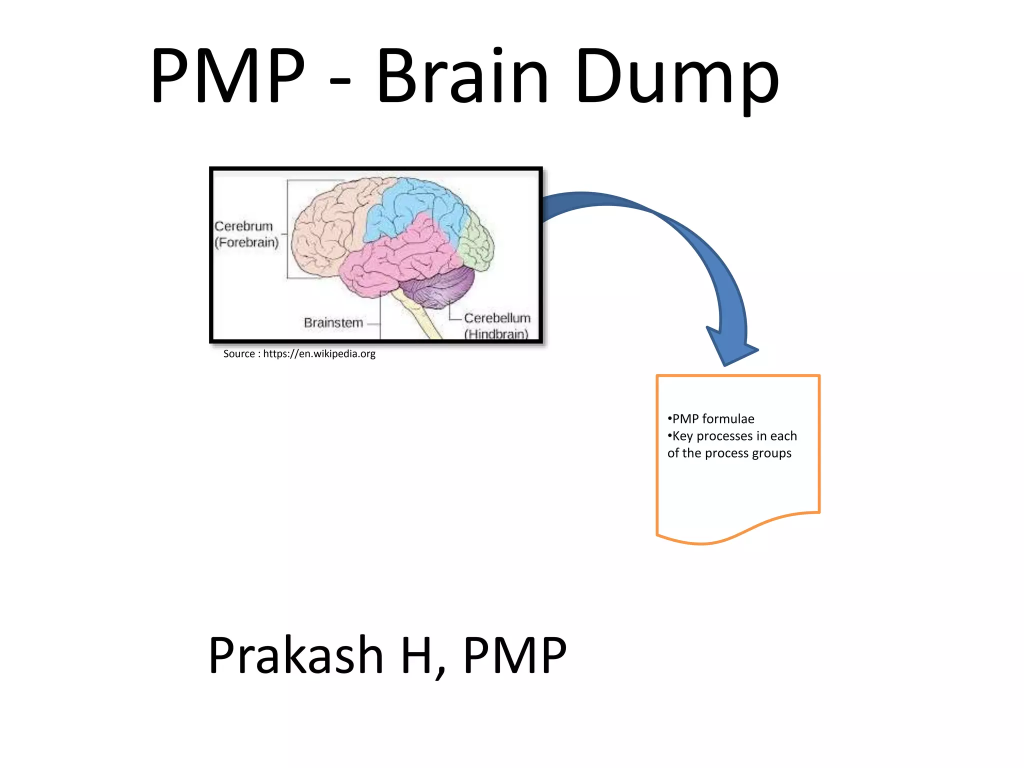 The document outlines key processes and formulae for the PMP exam, emphasizing the importance of utilizing the initial 15 minutes for reviewing essential information. It details specific areas to focus on, such as EVM formulae, communication channels, and stakeholder management. Utilizing a brain dump strategy enhances recall speed and allows for better analysis during the exam.