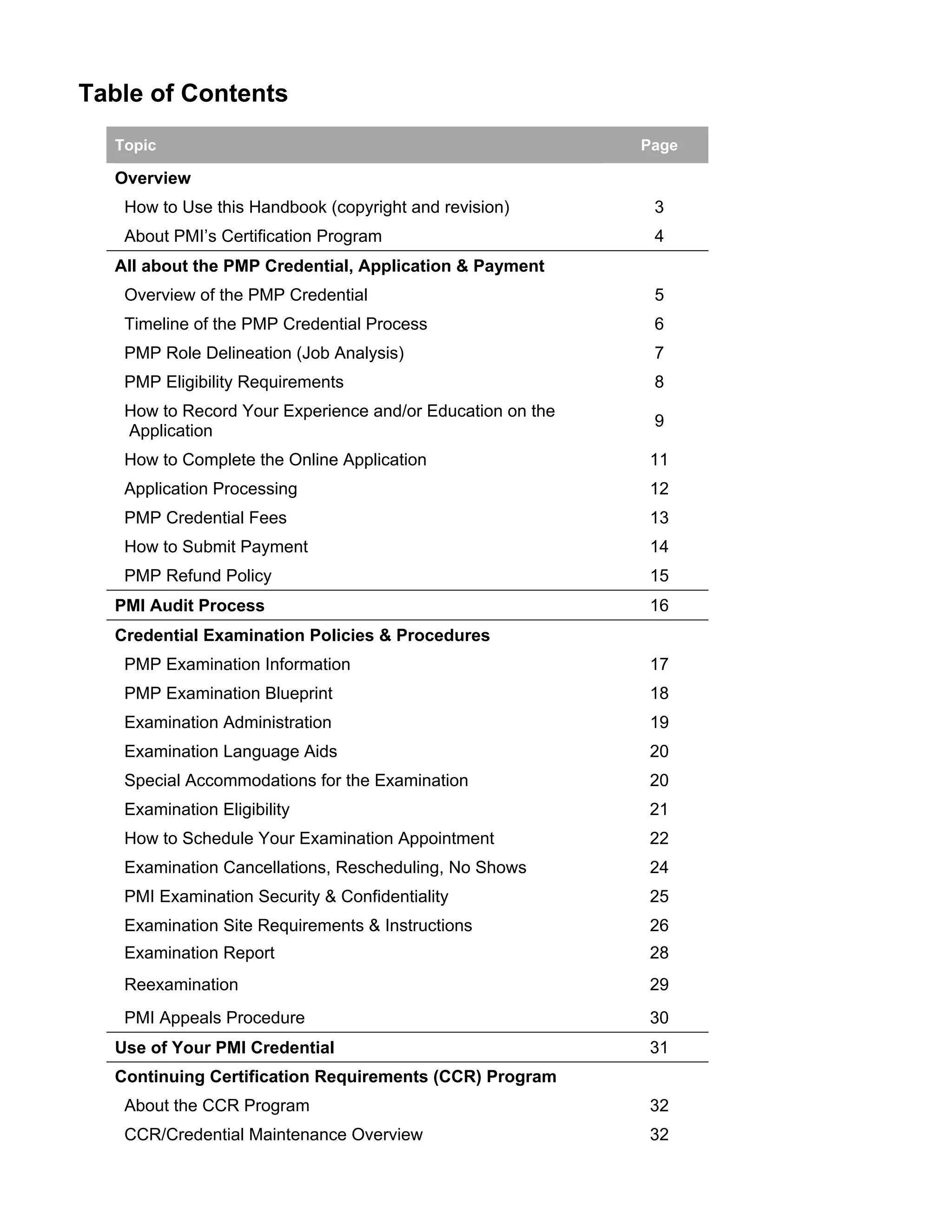 This document provides an overview of the Project Management Professional (PMP) credential process, including eligibility requirements, how to apply, fees, and policies. It discusses submitting the application and payment, the audit process, scheduling and taking the PMP exam, exam security and site requirements. It also reviews exam reports, the appeals process, using the PMP credential, and continuing certification requirements to maintain the credential. The handbook provides important information for both computer-based and paper-based exam candidates on how to obtain and keep the globally recognized PMP credential.