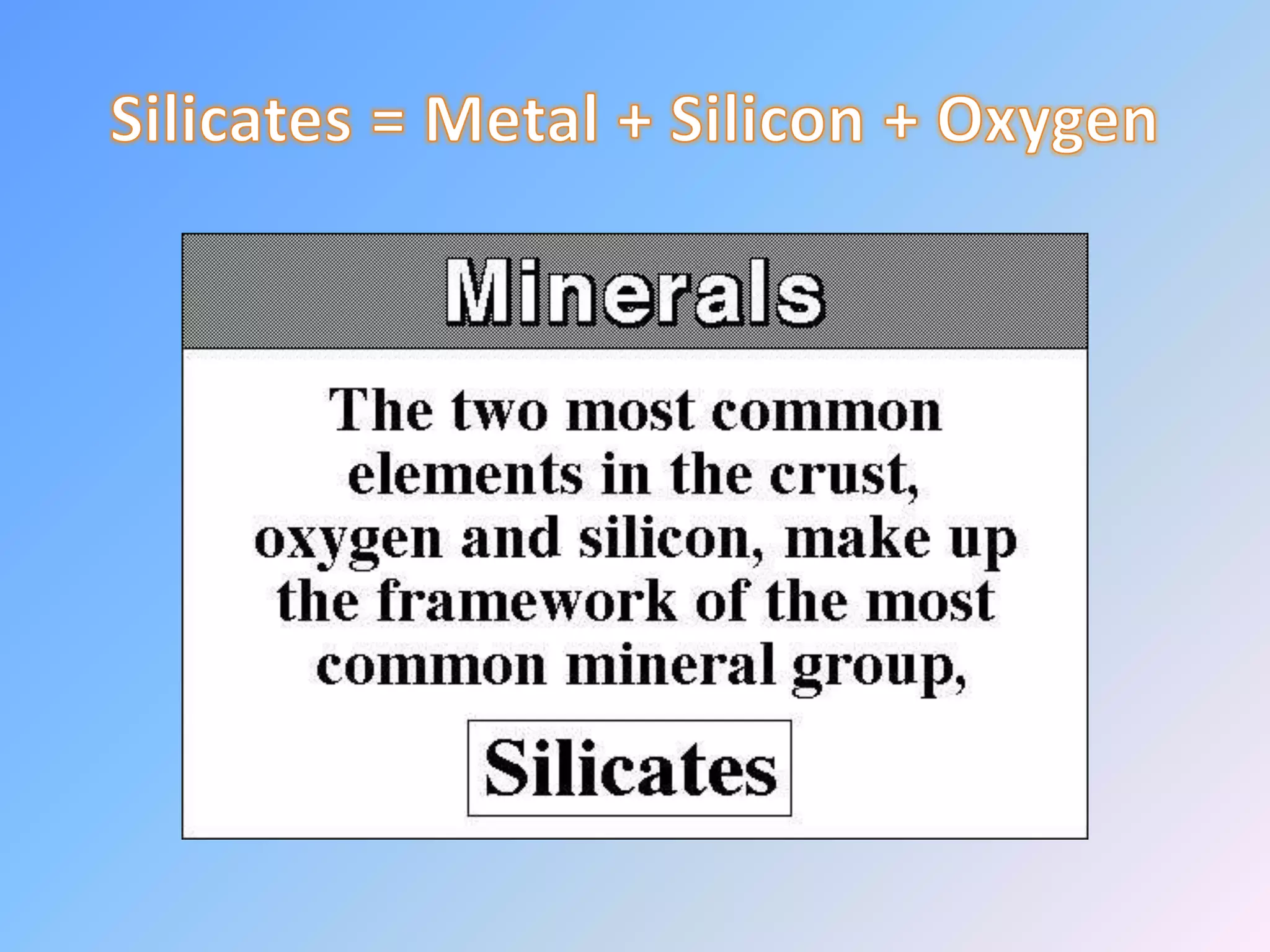 Minerals are naturally occurring inorganic solids with a definite chemical composition and structure. They can exist as elements like gold or silver or as compounds like oxides, carbonates, and silicates. Minerals form in two ways - elements exist freely in nature while compounds form through the combination of elements and minerals.