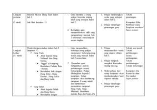 Dokumen tersebut merangkum langkah-langkah pelaksanaan pelajaran tentang Hikayat Hang Tuah. Pelajaran tersebut meliputi pendahuluan, aktiviti industri, pembahagian pelajar ke dalam kelompok untuk membincangkan watak dan perwatakan, aktiviti berpidato, dan penilaian akhir pelajaran.