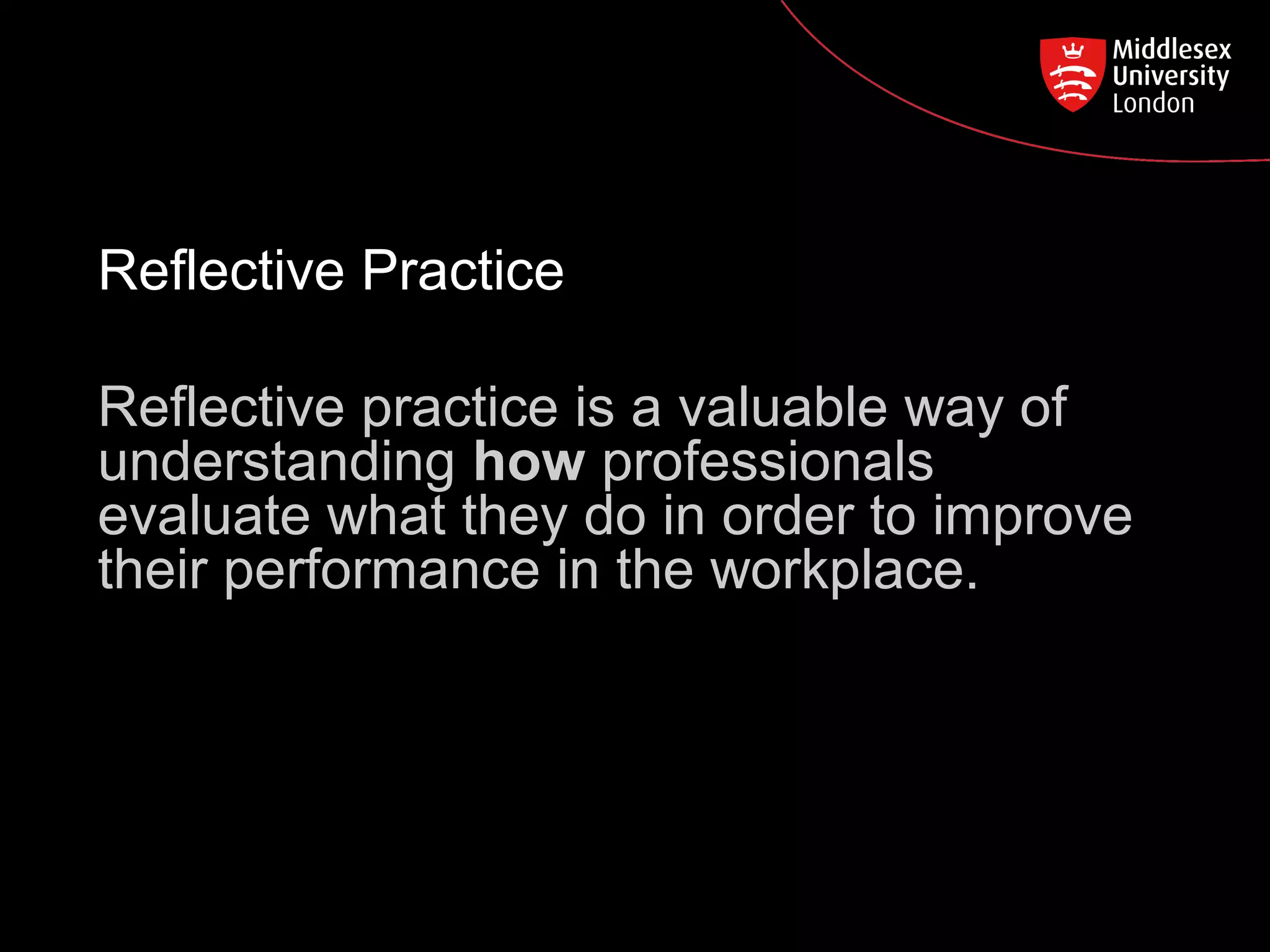 The document discusses reflective practice and how it can be used by professionals to evaluate and improve their performance. It provides examples of models for reflective practice, such as Kolb's experiential learning cycle and communities of practice. Reflective practice involves critical reflection on experiences to develop insights about oneself and one's work. It can be used to enhance practice through incorporating lessons learned from reflection.