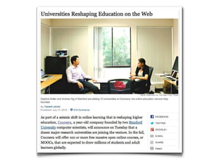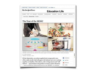This document discusses how technological abundance is changing education. It argues that traditional schools focus on assessing basic skills and content knowledge, which are now widely available, rather than more important skills like problem solving, critical thinking, collaboration and creativity. It presents nine qualities of "bold schools" that are centered around learning, use inquiry-driven approaches, support authentic work, integrate technology, foster connections, teach 21st century literacies, share best practices, encourage innovation and provoke discussion about educational change. The document advocates understanding contexts, having an emotional response, reflecting on one's practice, taking action to innovate and connect, and engaging others in order to effectively manage educational change in a world of abundance.
