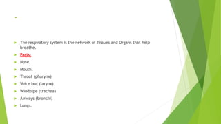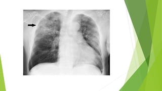 El sistema respiratorio es una red de tejidos y órganos que facilita la respiración, comprendiendo partes como la nariz, boca, pulmones y tráquea. La neumonía, una condición inflamatoria de los pulmones que afecta principalmente a los alvéolos, se desarrolla cuando los organismos ingresan a los pulmones, con factores predisponentes como el tabaquismo y la edad avanzada. Los síntomas incluyen tos, dolor en el pecho, fiebre y dificultad para respirar, y su tratamiento varietal depende de la severidad y el tipo de infección.