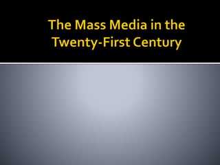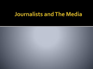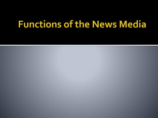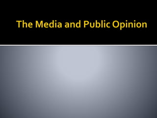 The document discusses the functions and history of the media in American politics. It outlines how the media gathers and disseminates information to the public through various sources like newspapers, radio, television, and the internet. While the main goal of informing the public has remained the same, the ways information is delivered has changed over time. The media plays key roles like informing, investigating, and interpreting events for the public.