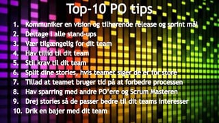 The SafeCom team struggled with adopting agile practices until a new product owner was appointed. The new product owner painted a clear vision, set specific sprint goals, prioritized support tasks, and spent significant time with the team. As a result, the team's productivity and delivery improved dramatically. The document advocates that product owners must provide focus, direction and support to their teams for agile methods to succeed.