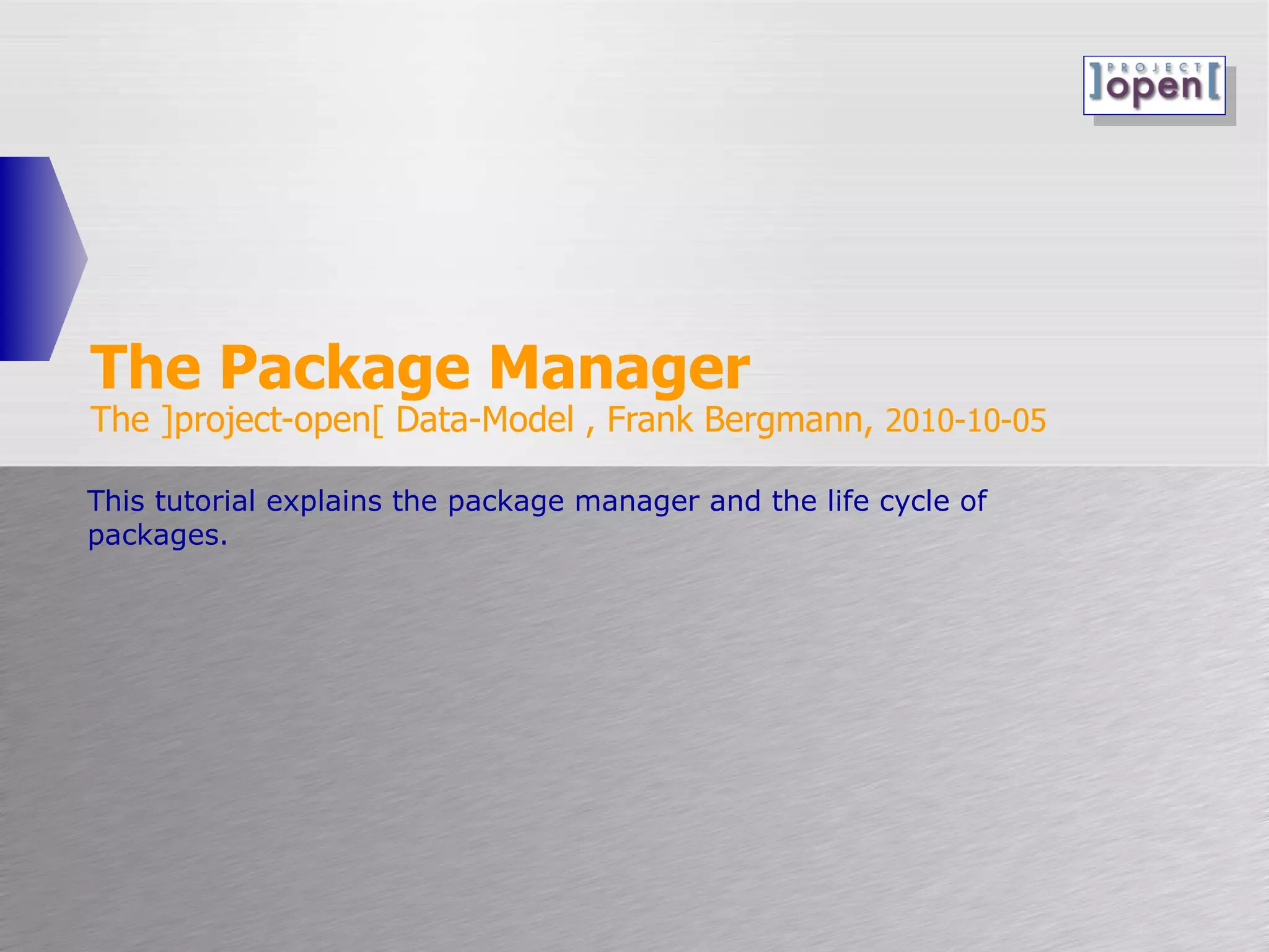 This tutorial explains the package manager for the ]project-open[ data model, detailing the lifecycle of packages which includes installation, updating, and uninstallation. It provides information on package structure, including meta-information, data-models, dependencies, and parameters. Additionally, it discusses how to write and update packages, emphasizing the importance of adhering to naming conventions for proper recognition by the package manager.