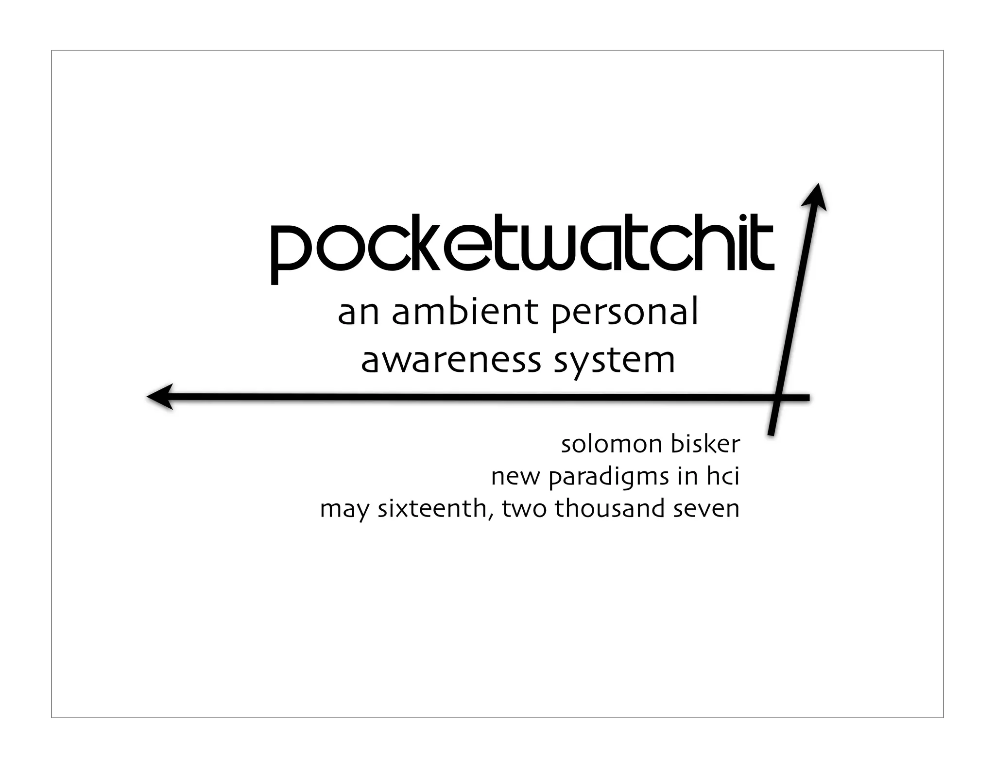 The Pocketwatchit is an ambient personal awareness system designed to help users keep track of their belongings using RFID technology. It allows for customizable pockets that independently report their contents to a central display, enabling users to maintain their style while minimizing the risk of forgetting items. This system aims to create a more seamless and personal experience compared to current smartwatches.