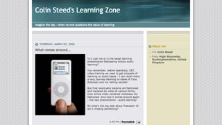 The document discusses podcasting as a form of digital media consisting of episodic series that can be subscribed to and streamed online. It touches on the significance of podcasts in learning, community building, and the potential benefits they offer, such as cost savings and storytelling. Additionally, it highlights various tools for podcast production and includes testimonials about a specific UK podcast, 'macbites,' hosted by Elaine Giles and Mike Thomas.