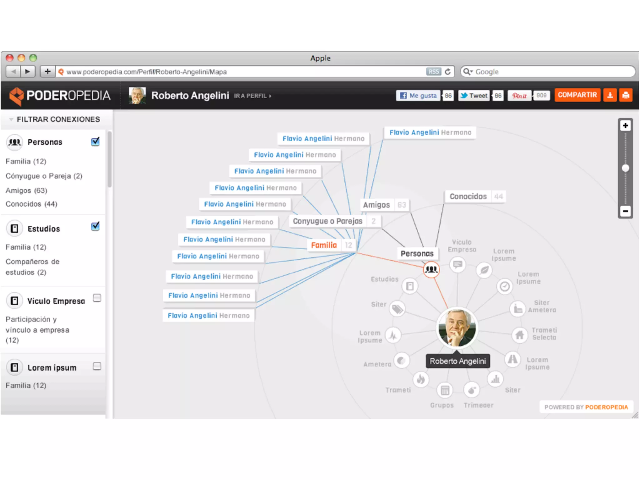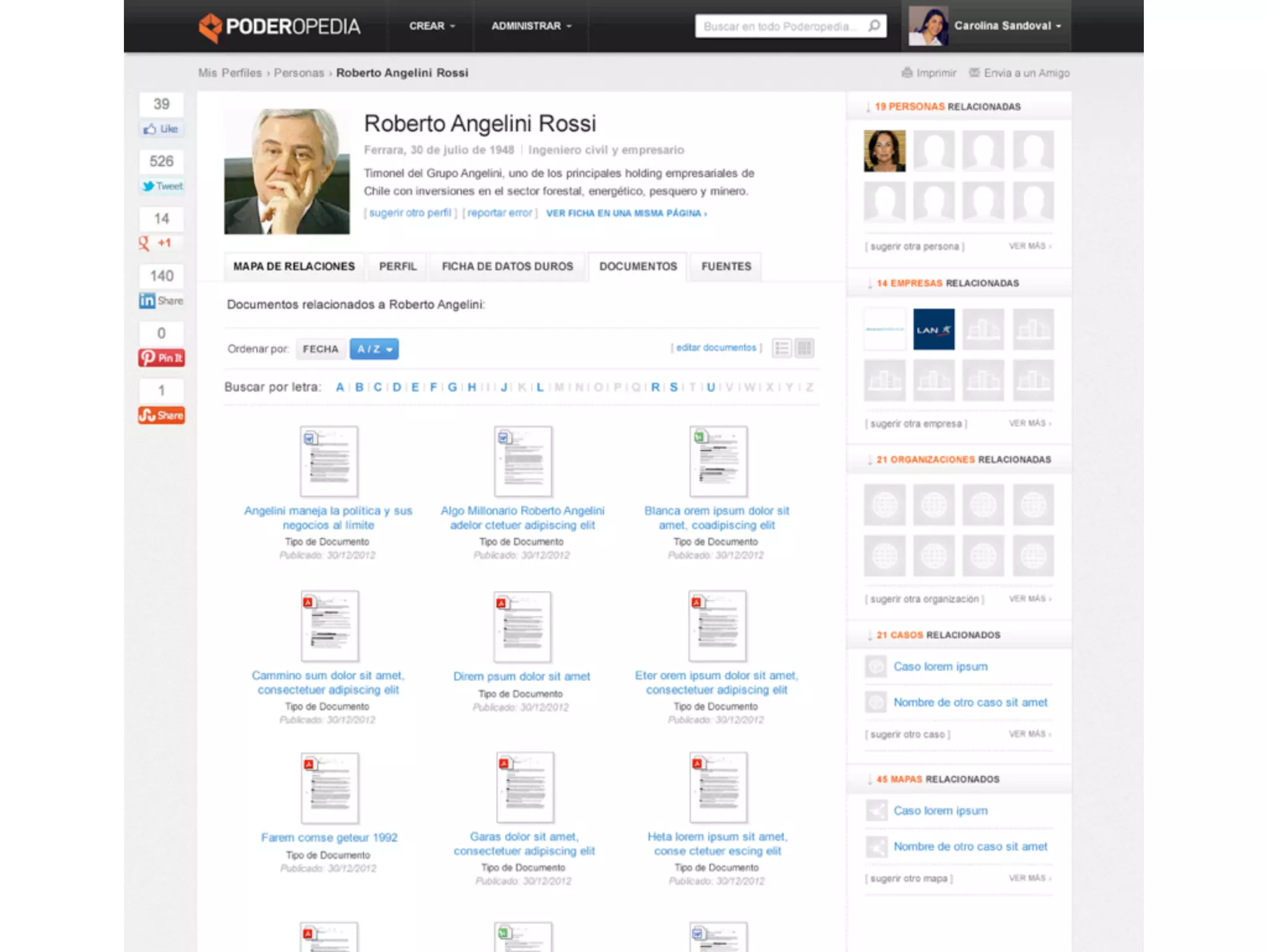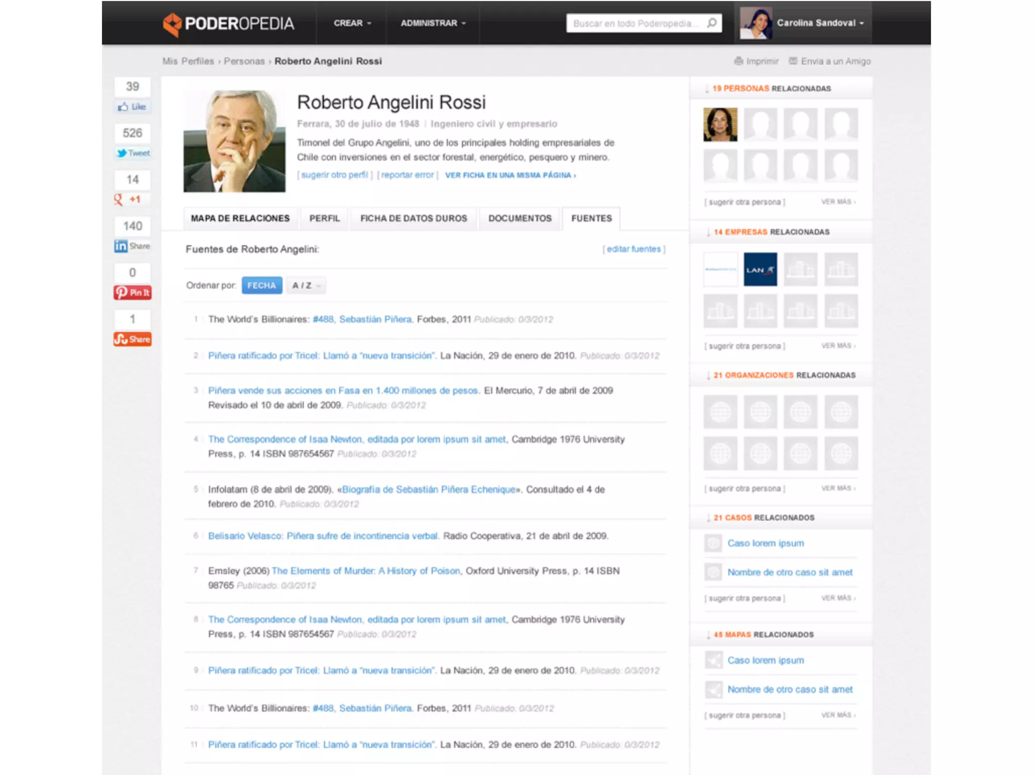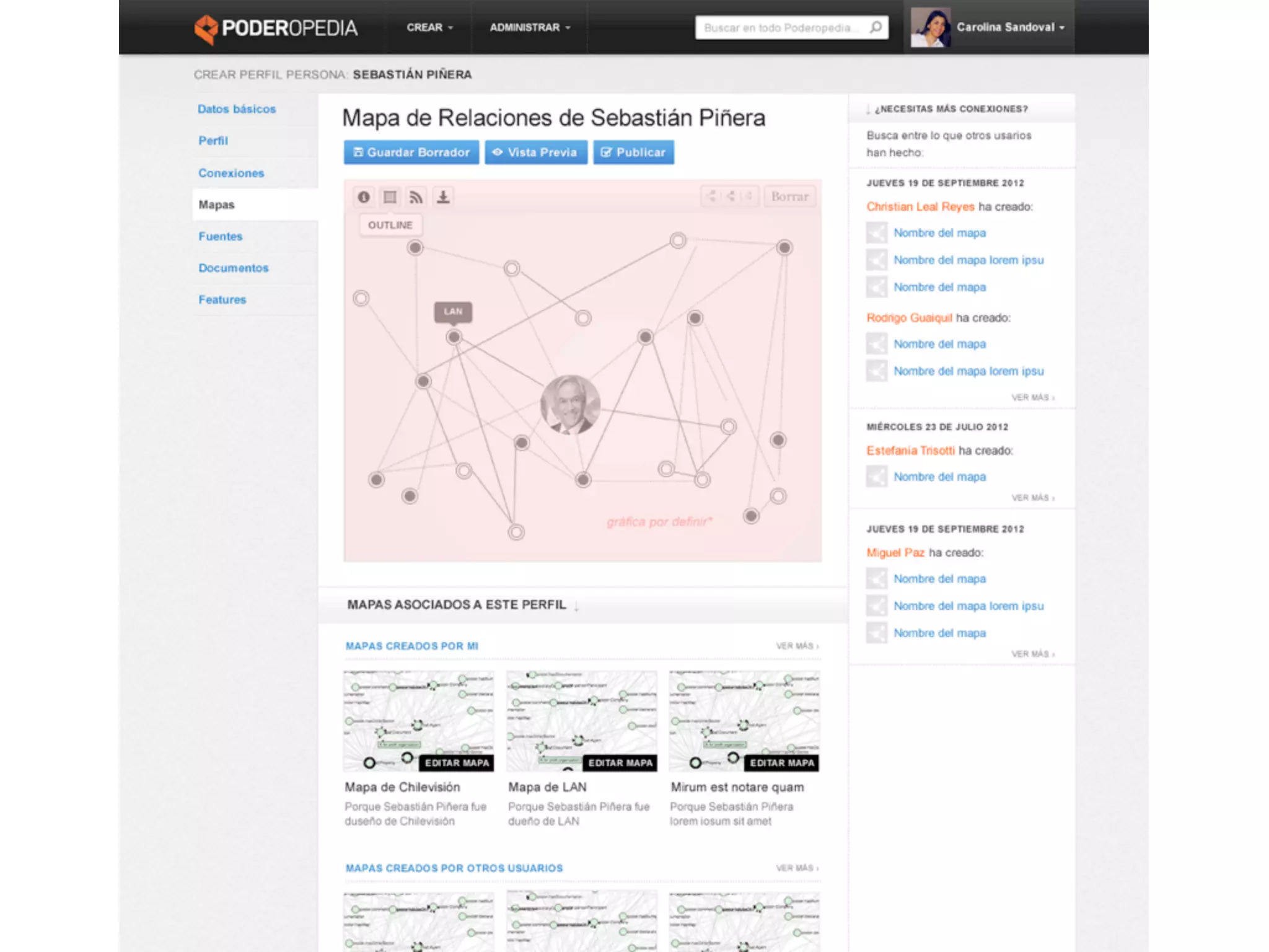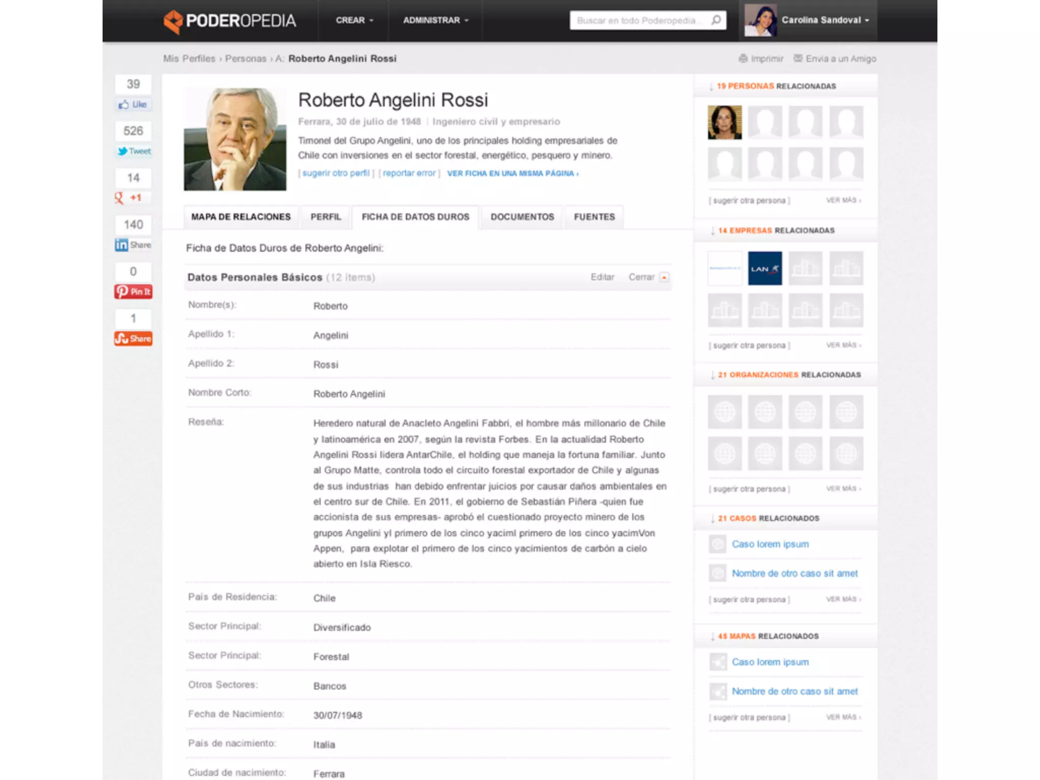 This document outlines a data journalism project called Poderopedia that aims to map the connections between Chile's political and business elite. It details how Poderopedia collects information from public and crowdsourced sources, constructs profiles of individuals that include relationship maps and sources, and visualizes the connections between people, organizations, and companies to increase transparency around who wields power and influence in Chile. The project uses techniques like scraping, custom ontologies, linked data, and triple stores to combine editorial content and hard data about the people and institutions that comprise Chile's "one percent."