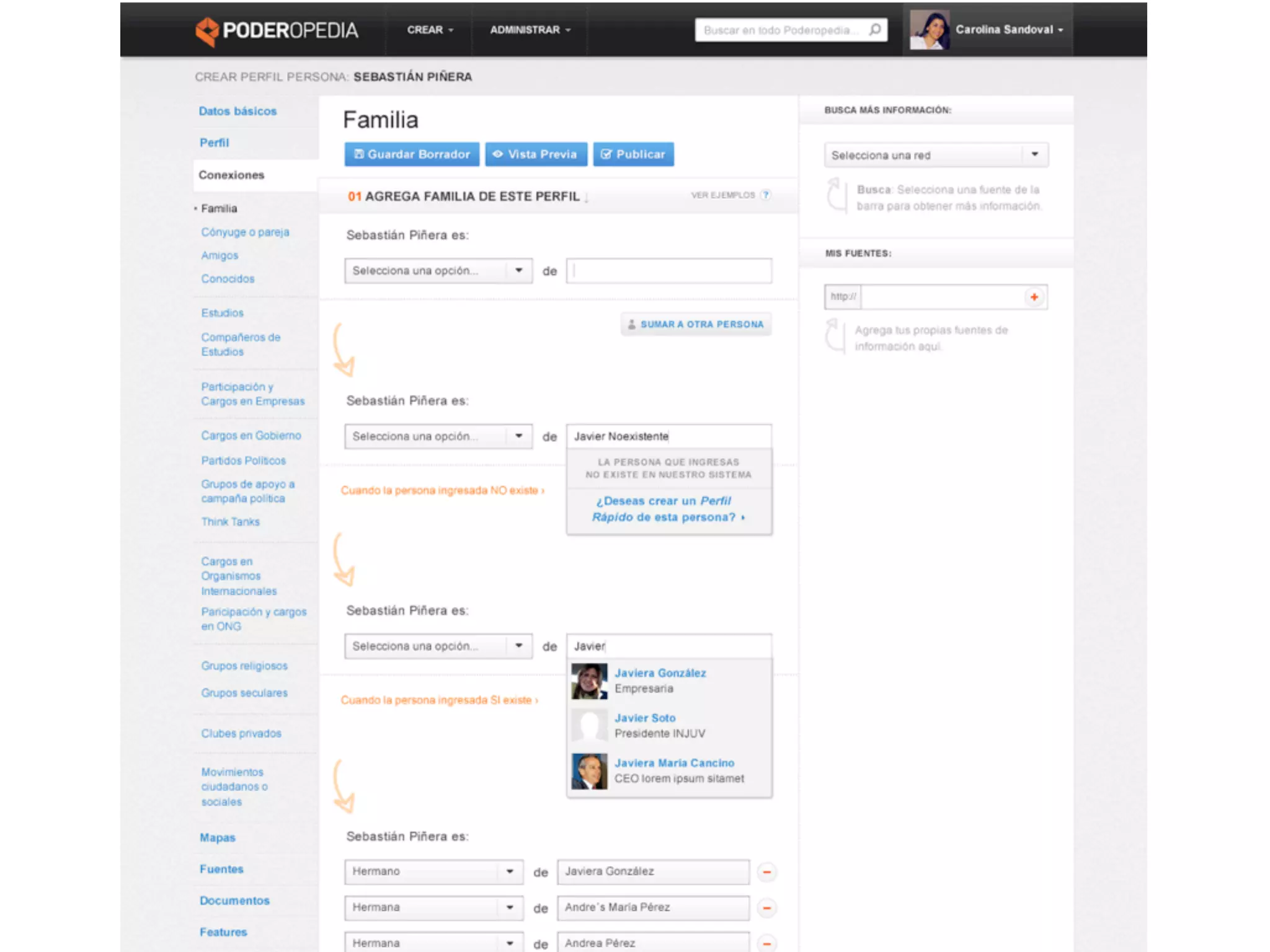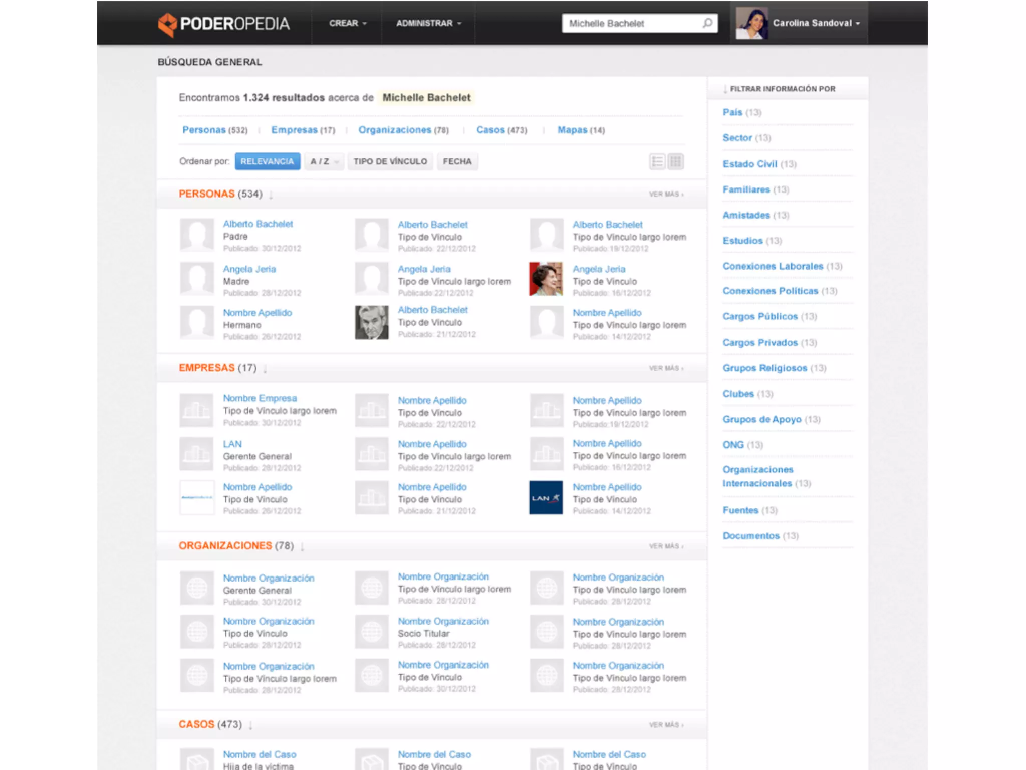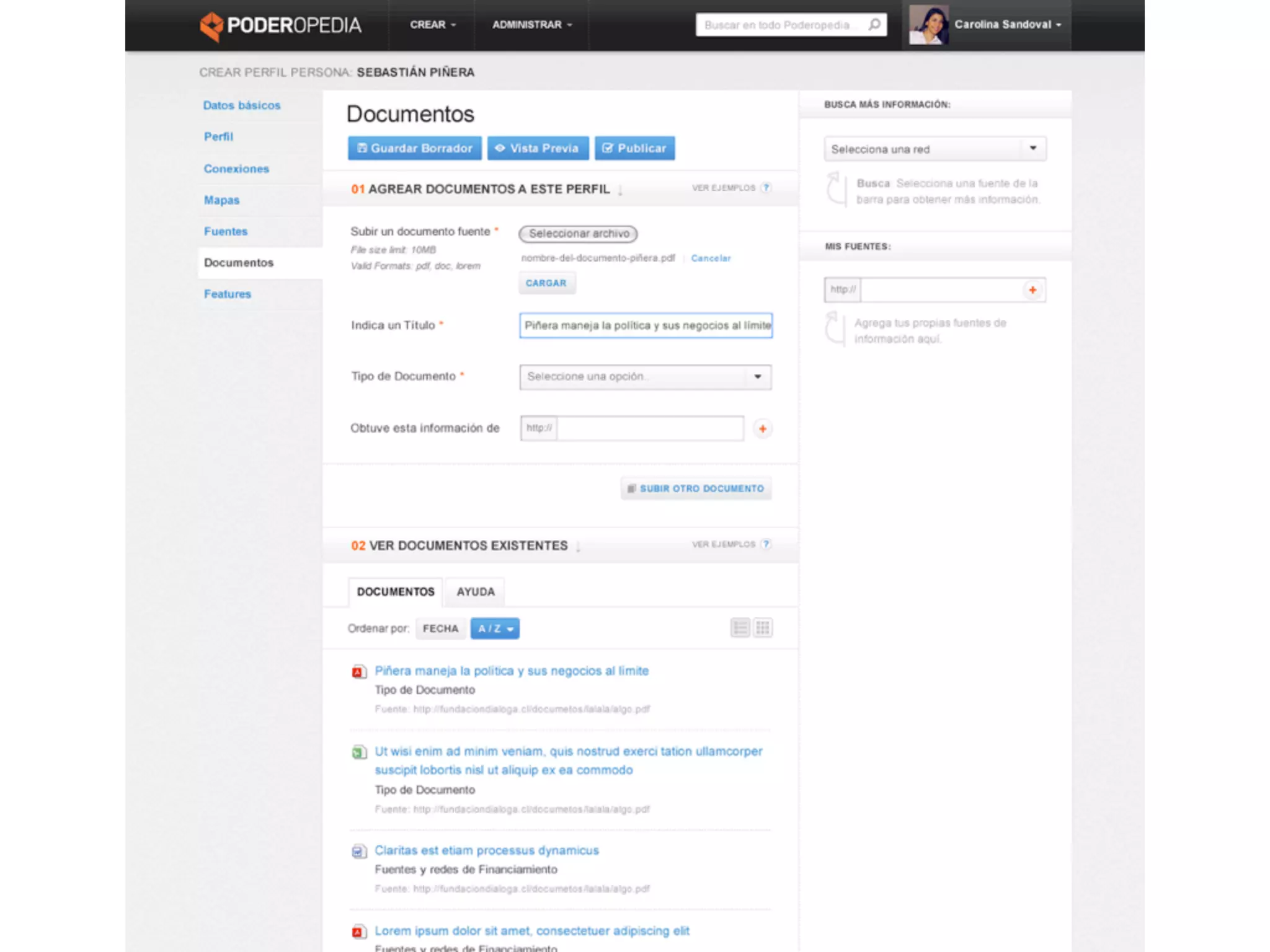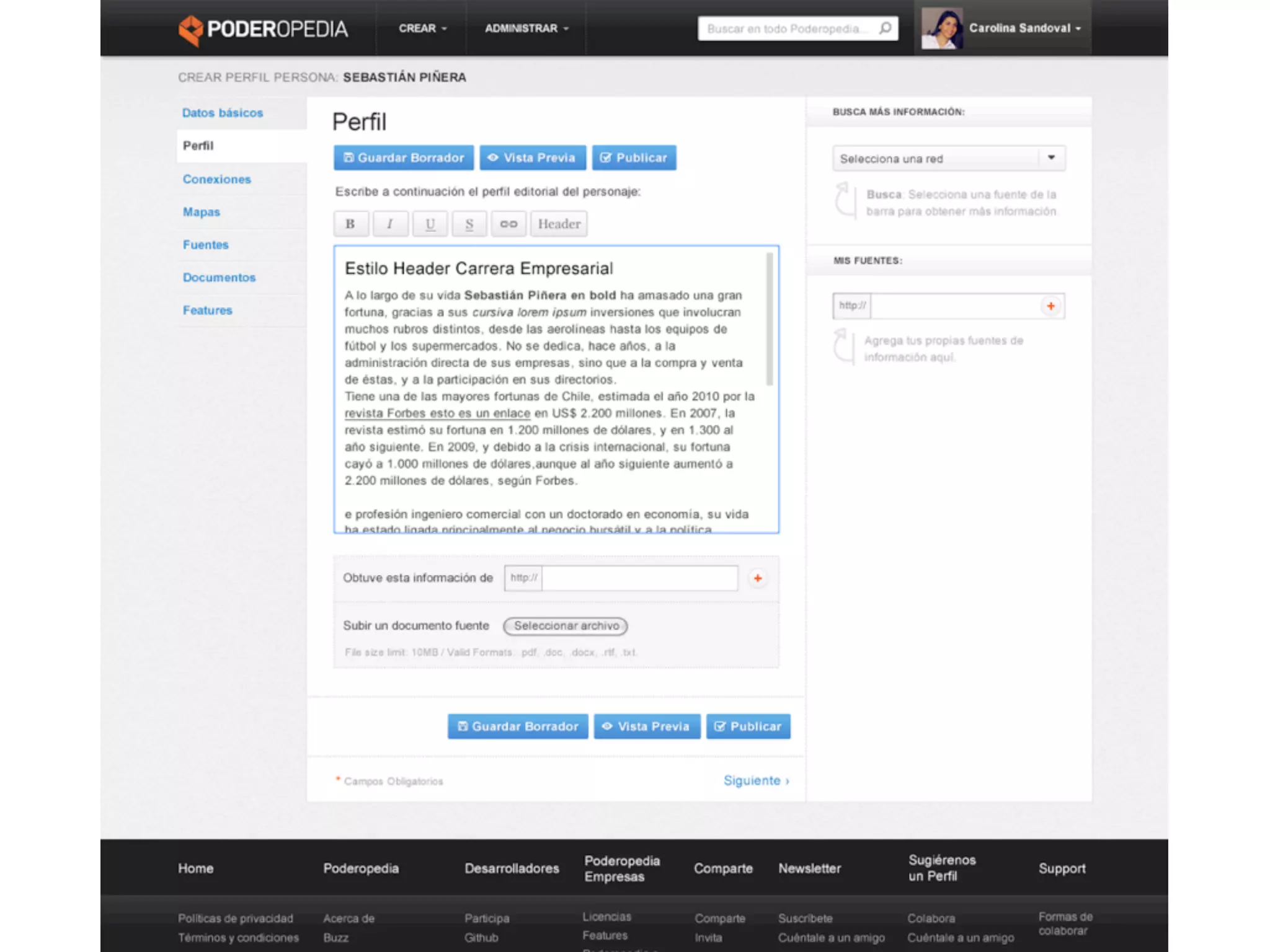 This document outlines a data journalism project called Poderopedia that aims to map the connections between Chile's political and business elite. It details how Poderopedia collects information from public and crowdsourced sources, constructs profiles of individuals that include relationship maps and sources, and visualizes the connections between people, organizations, and companies to increase transparency around who wields power and influence in Chile. The project uses techniques like scraping, custom ontologies, linked data, and triple stores to combine editorial content and hard data about the people and institutions that comprise Chile's "one percent."