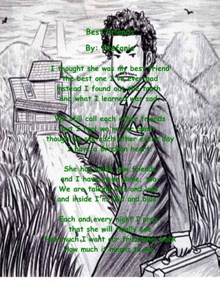 This poem is about a girl who thought her best friend was truly her best friend, but discovered some sad truth that has caused a rift in their friendship. Though they still see each other every day at school, they talk less and less now and the girl feels heartbroken without the close friendship they used to have, hoping her friend will realize how much she still values their friendship.