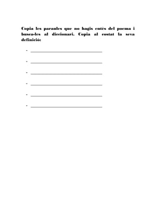 Copia les paraulesque no hagis entès del poema i