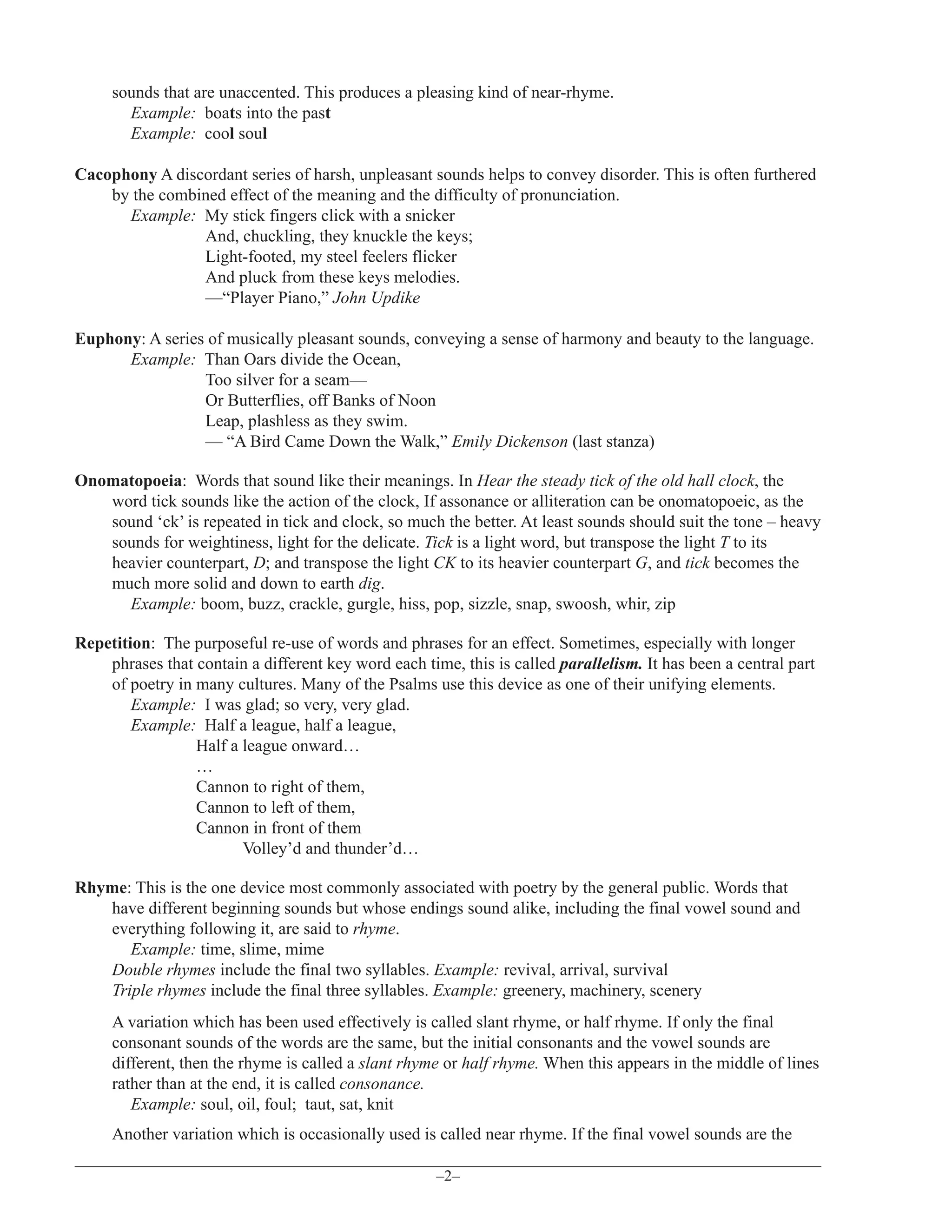 This document provides an overview of various poetic devices used to craft poetry, including devices that relate to the sounds of words, meanings of words, and arrangement of words. It discusses poetic elements like rhyme, meter, figures of speech, and point of view. Specifically, it defines common poetic terms like metaphor, simile, personification, and explains how they are employed to enhance poetic works. It also examines how poetic form, line structure, and rhyme schemes organize words on the page.