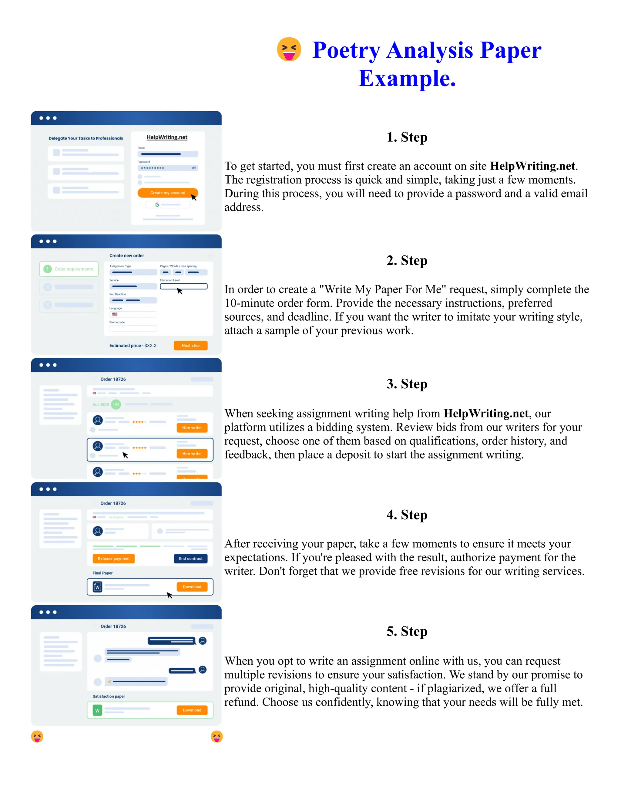 The document discusses the steps involved in requesting an assignment to be written by the website HelpWriting.net. It outlines 5 steps: 1) Create an account with a password and email, 2) Complete a 10-minute order form providing instructions, sources, and deadline, 3) Review bids from writers and choose one, 4) Review the completed paper and authorize payment, 5) Request revisions to ensure satisfaction and receive a refund if plagiarized. The document promotes the website's writing services and guarantees of original, high-quality content.