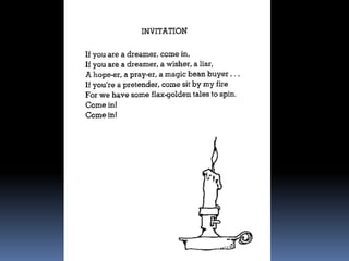 The document is a collection of poems and commentary by Matt Wagoner. It includes 14 original poems by Wagoner on themes of loss, isolation, and finding purpose. Between poems, Wagoner provides context for his writing process and what inspired each poem. He also discusses favorite poems by other authors like Poe, Dickinson, Silverstein, and Frost that have impacted him. The compilation gives insight into Wagoner's personal experiences, mental state, and how poetry has provided an outlet for processing grief and life changes.