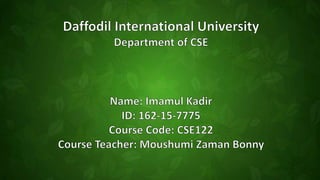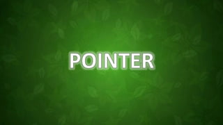Pointer is a variable that stores the address of another variable. The '&' operator returns the address of a variable and '*' operator accesses the value of the variable being pointed to. Pointers must be declared with a data type that matches the variable it is pointing to (e.g. int* points to an int). Pointers can point to the address of other pointers, forming a chain. To access the value of a variable through a pointer, the pointer is dereferenced with the '*' operator.