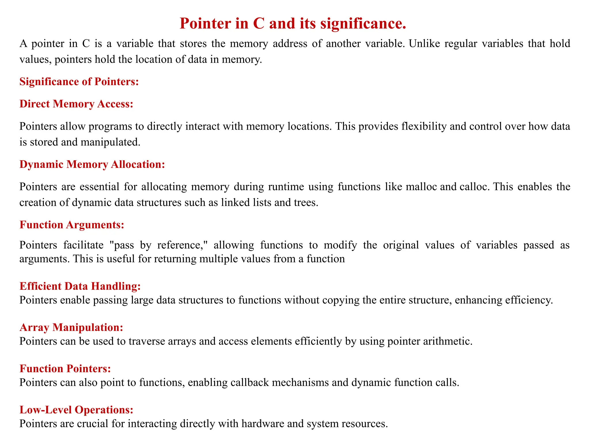 Pointer in C and its significance, Relationship between pointers and memory addresses.pptx