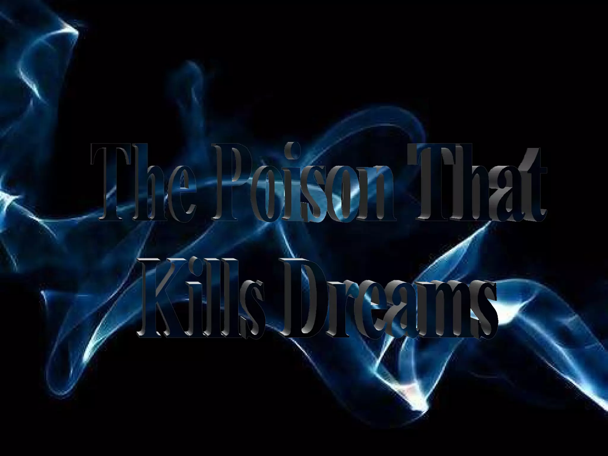 Negativity is a poison that kills dreams and potential. It starts as negative thoughts that then turn into negative words and destructive criticism. Repeated negative thinking can lead to depression, mental disorders, and prevent people from achieving their goals and dreams. The document encourages monitoring one's thoughts and words, replacing negative speech with positive language, focusing on gratitude, and speaking with enthusiasm to eliminate negativity and prevent it from holding one back.