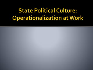 This document discusses why politics is an important topic to study and introduces some key concepts in political science. It notes that politics deals with important social and political issues like education, taxation, and racial tensions. It defines politics and government, and discusses why states vary in their policies and approaches. It introduces quantitative and qualitative analysis, the idea of variables and units of analysis, and the concepts of correlation and causation. Key terms covered include concepts, operationalization, theories, hypotheses, and political culture.