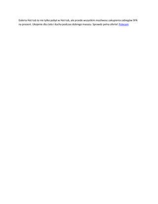 to nie tylko pobyt w Hot tub, ale przede wszystkim mozliwosc zakupienia zabiegów SPA na prezent. Ukojenie dla ciala i ducha podczas dobrego masazu. Sprawdz pelna oferte! Polecam