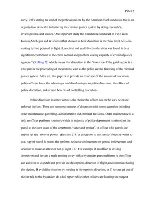Police officers have significant discretion in how they enforce the law. This discretion allows officers to consider the totality of circumstances in each situation rather than following rigid guidelines. It enables officers to make judgments about issues like whether to arrest someone or issue a warning. While discretion provides benefits like catering decisions to individuals and preventing overburdening of the courts, it also presents disadvantages if not used appropriately. Overall, properly exercised discretion is a necessity for effective policing.