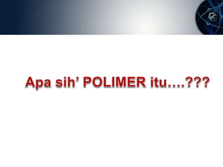 Polimer adalah senyawa besar yang terdiri dari banyak unit monomer yang terhubung. Polimer diklasifikasi berdasarkan sumber, struktur rantai, jenis monomer, dan sifat termalnya. Polimer memiliki banyak manfaat di berbagai bidang seperti kedokteran, pertanian, dan teknik, meski juga dapat berdampak negatif terhadap lingkungan jika dibuang sembarangan.