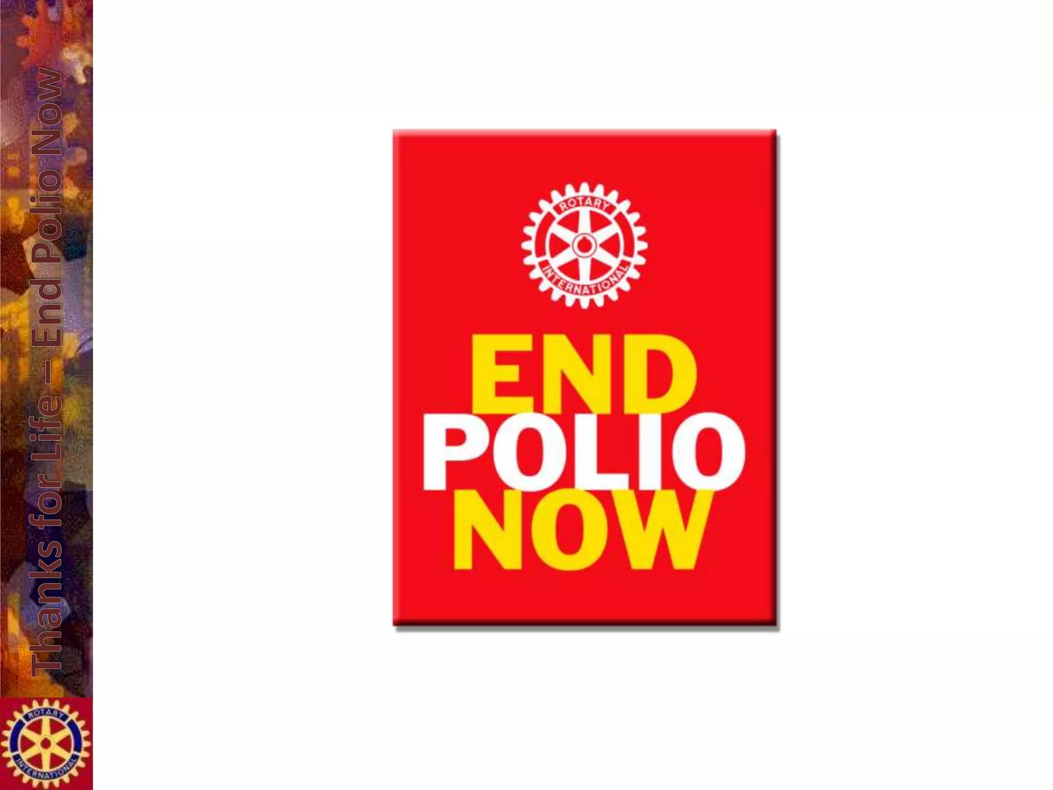 Polio is a virus primarily affecting young children, causing paralysis and limb atrophy. The last recorded case in the UK was over 20 years ago, and immunization efforts led by Rotary since 1985 have protected two billion children, significantly reducing polio cases worldwide. There is a simple treatment to prevent polio, and donations can help vaccinate multiple children.