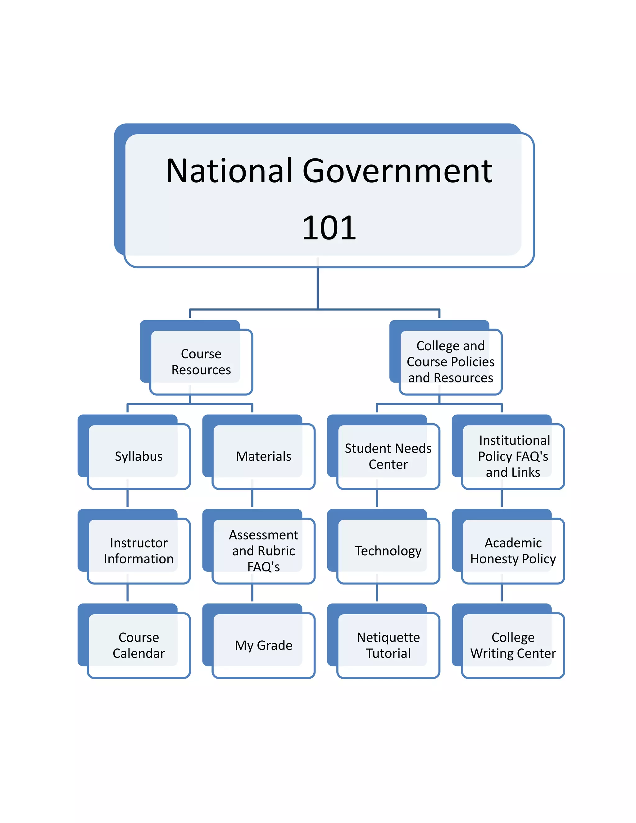 This course summary outlines the key elements of a National Government course at a community college (CDL). The course is a general education social science requirement. The instructor aims to teach and inspire students who may take the course out of requirement rather than interest. Productive outcomes include enhancing students' knowledge of government and politics to form educated opinions and recognize future changes. The course materials are a textbook on American government and politics. The schedule follows the textbook's 14 chapters over 12 weeks, with weekly discussions, quizzes, papers, and a midterm and final research project. The course is worth 280 points total.