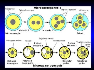 Pollen biology involves understanding the structural and functional aspects of pollen grains. The main functions of pollen are to discharge male gametes for fertilization. Key events in pollen biology include pollen development, dispersal through animals or wind, pollination through self or cross pollination, pollen-pistil interaction, and fertilization. Understanding pollen biology is important for fields like agriculture, forensics, and archaeology.