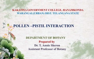 The document discusses pollen-pistil interaction, detailing the sequence of events from pollen deposition to fertilization, including concepts of sexual compatibility and incompatibility. It defines self-incompatibility, its genetic control, and types such as heteromorphic and homomorphic incompatibility, as well as their mechanisms. Additionally, it explores methods for overcoming incompatibility, emphasizing the importance of self-incompatibility in maintaining genetic diversity and plant vigor.