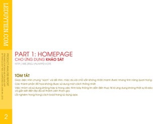 Báo cáo phân tích sản phẩm của ứng dụng khảo sát Zing Me chỉ ra rằng giao diện chưa thật sự thu hút và thiếu sự thống nhất trong thiết kế, dẫn đến trải nghiệm người dùng kém. Các chức năng quan trọng như tạo khảo sát không được làm nổi bật, và thông tin được trình bày thiếu logic gây khó khăn cho người dùng trong việc định hình nội dung. Nhiều ý kiến cải tiến được đề xuất nhằm nâng cao tính khả dụng và sự kết nối giữa người dùng và ứng dụng.