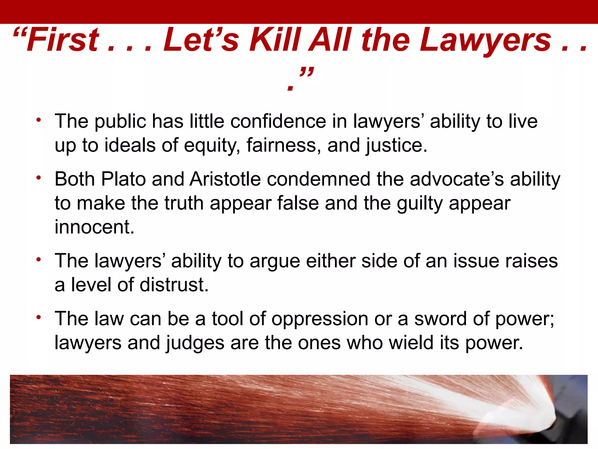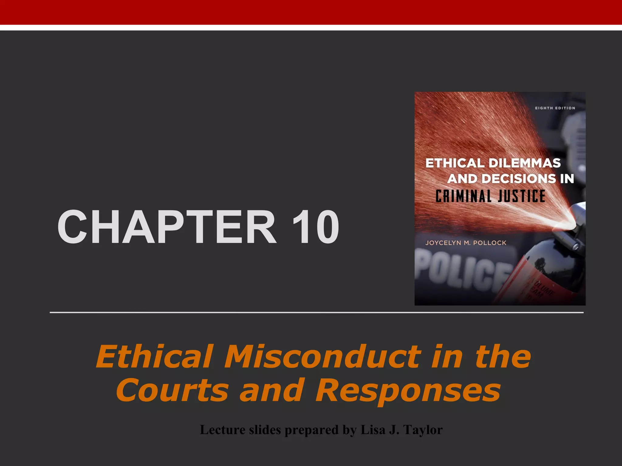 This document discusses various forms of ethical misconduct that can occur within the legal system. It provides examples of defense attorney misconduct such as using drugs or alcohol during trials. It also discusses types of prosecutorial misconduct like withholding exculpatory evidence. The document then examines issues like judicial misconduct and concerns about false convictions due to mistakes or biases. It explores challenges to prosecutorial independence and ensuring justice. Overall, the document analyzes different types of ethical violations that can undermine fairness within the legal system.