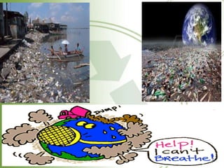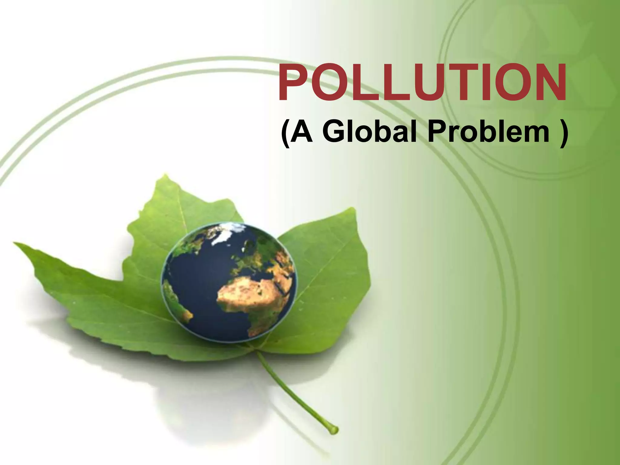Pollution is the introduction of contaminants into the natural environment that cause harm. It has increased since World War II due to rapid industrialization. The main types of pollution are air, water, noise, and soil pollution. Air pollution damages health and is caused by sources like vehicles, industries, and biomass burning. Water pollution contaminates water bodies through untreated industrial and domestic waste. Noise pollution has negative health impacts and is caused by transportation and machinery. Soil pollution introduces harmful chemicals from activities like agriculture and improper waste disposal. Controlling pollution requires efforts like alternative energy use, afforestation, limiting pollutants, and proper waste treatment.