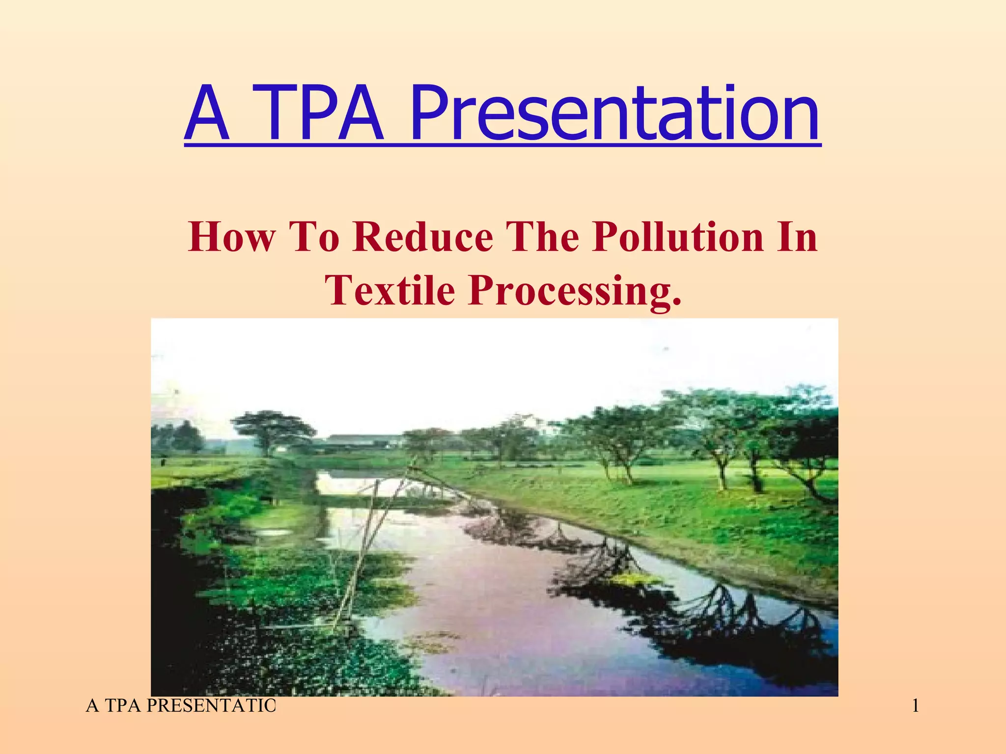 This document provides information on reducing pollution in textile processing and includes the following key points: