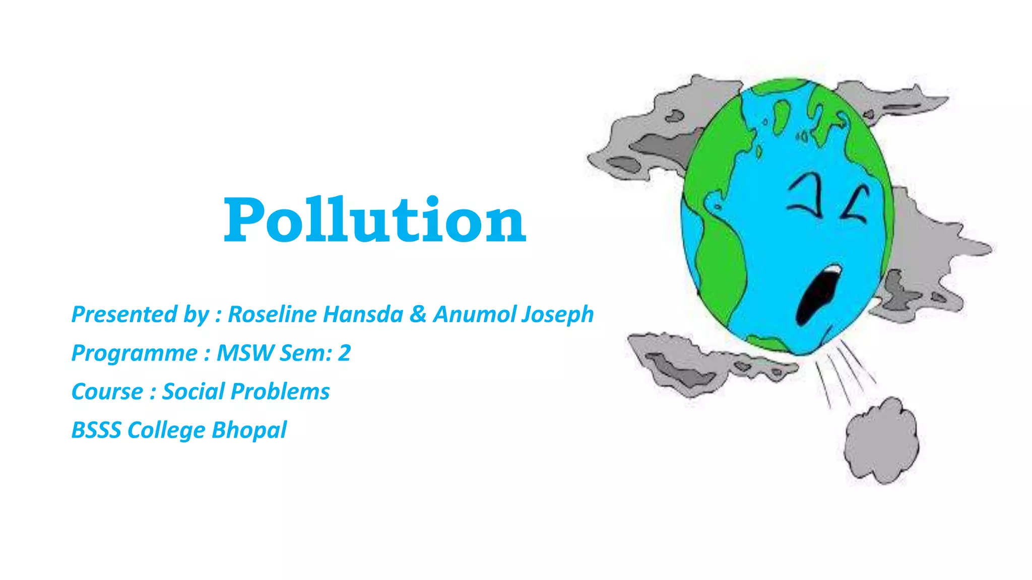 Pollution is the introduction of contaminants into the natural environment that cause adverse effects. The document defines several types of pollution such as air, water, soil, noise, thermal, and nuclear pollution. It then discusses the causes of each type which include vehicle exhaust, industrial emissions, agricultural runoff, and other human activities. The consequences of pollution are outlined as negative health impacts, reduced biodiversity, climate change effects, and economic damages. Approaches to addressing pollution prevention are presented, along with relevant legal provisions and initiatives by environmental non-governmental organizations in India. The role of social workers in creating awareness and finding sustainable solutions is also covered.
