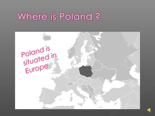 Poland is a country located in Europe. The capital of Poland is Warsaw. Some key facts about Poland are that the official language is Polish, the system of government is a democracy, the population is around 38 million people, and the currency is the zloty. Poland has a long history and was once partitioned before gaining independence in 1918. Some traditional Polish foods include pierogi dumplings, bigos stew, and oscypek smoked cheese.