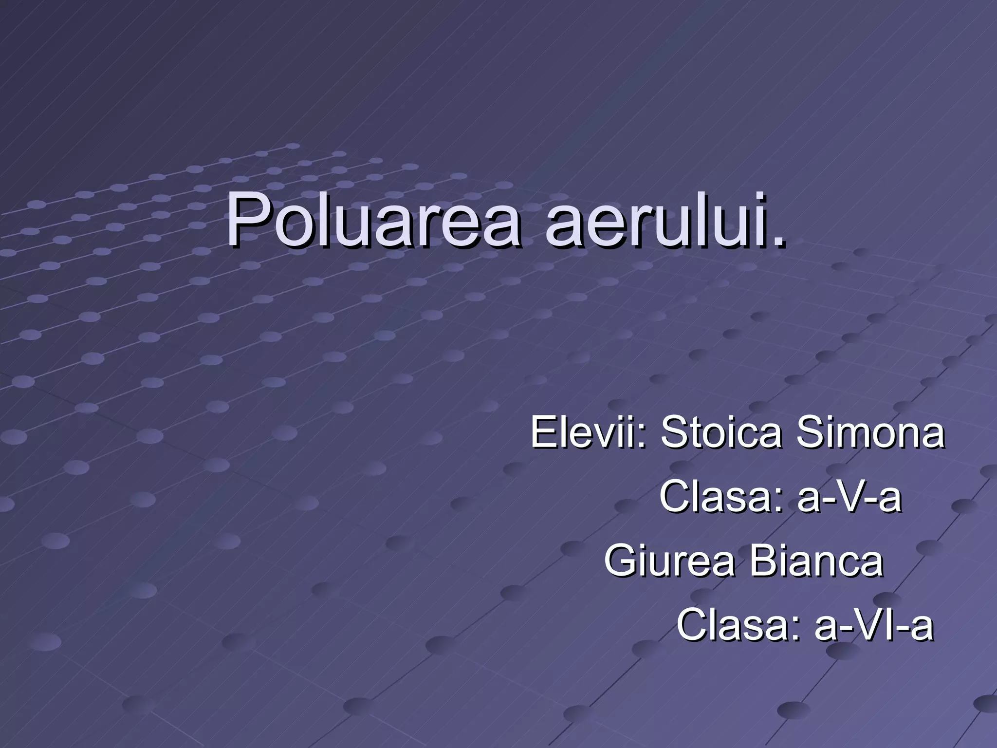 Poluarea aerului reprezintă contaminarea atmosferei cu substanțe nocive care afectează sănătatea umană și ecosistemele. Aceasta s-a agravat în special în timpul revoluției industriale, când smogul a devenit un pericol major pentru sănătate. Gazele de seră, precum dioxidul de carbon, contribuie la încălzirea globală, având un impact negativ asupra mediului.