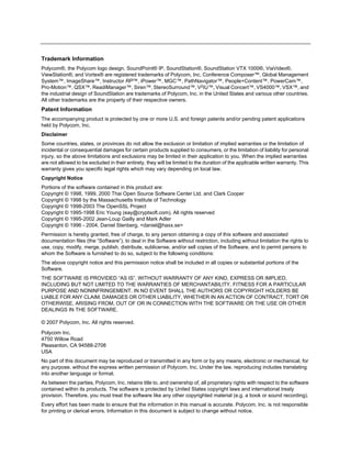 This document is the user guide for the SoundPoint IP 550 SIP phone. It provides instructions for assembling, connecting, and using the basic and advanced features of the phone. These include placing and answering calls, transferring calls, setting up conferences, customizing settings like volume, time and date, and troubleshooting potential issues with phone operation. The guide also covers legal notices regarding patents, copyrights, and trademarks.
