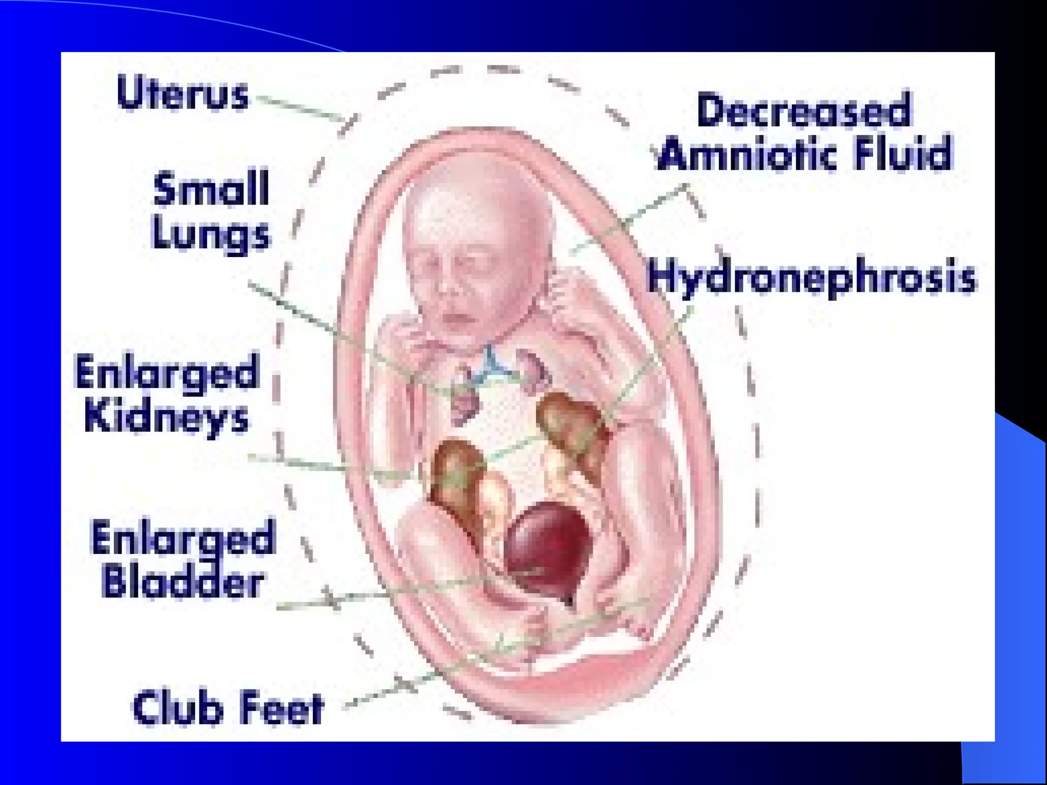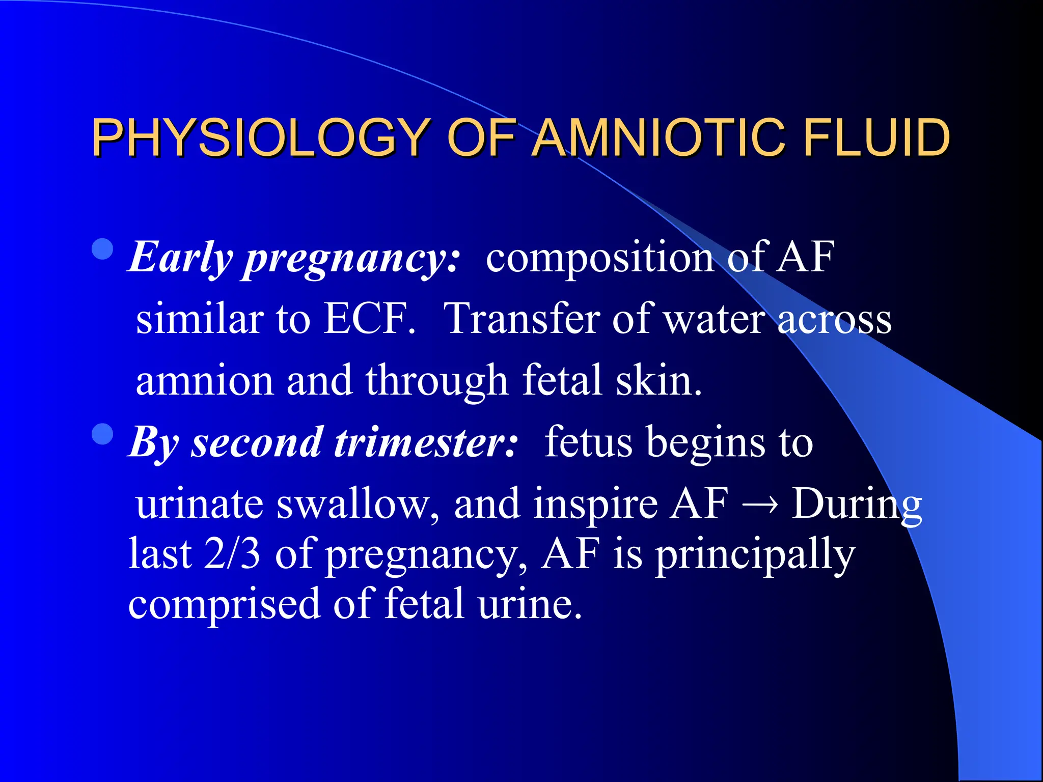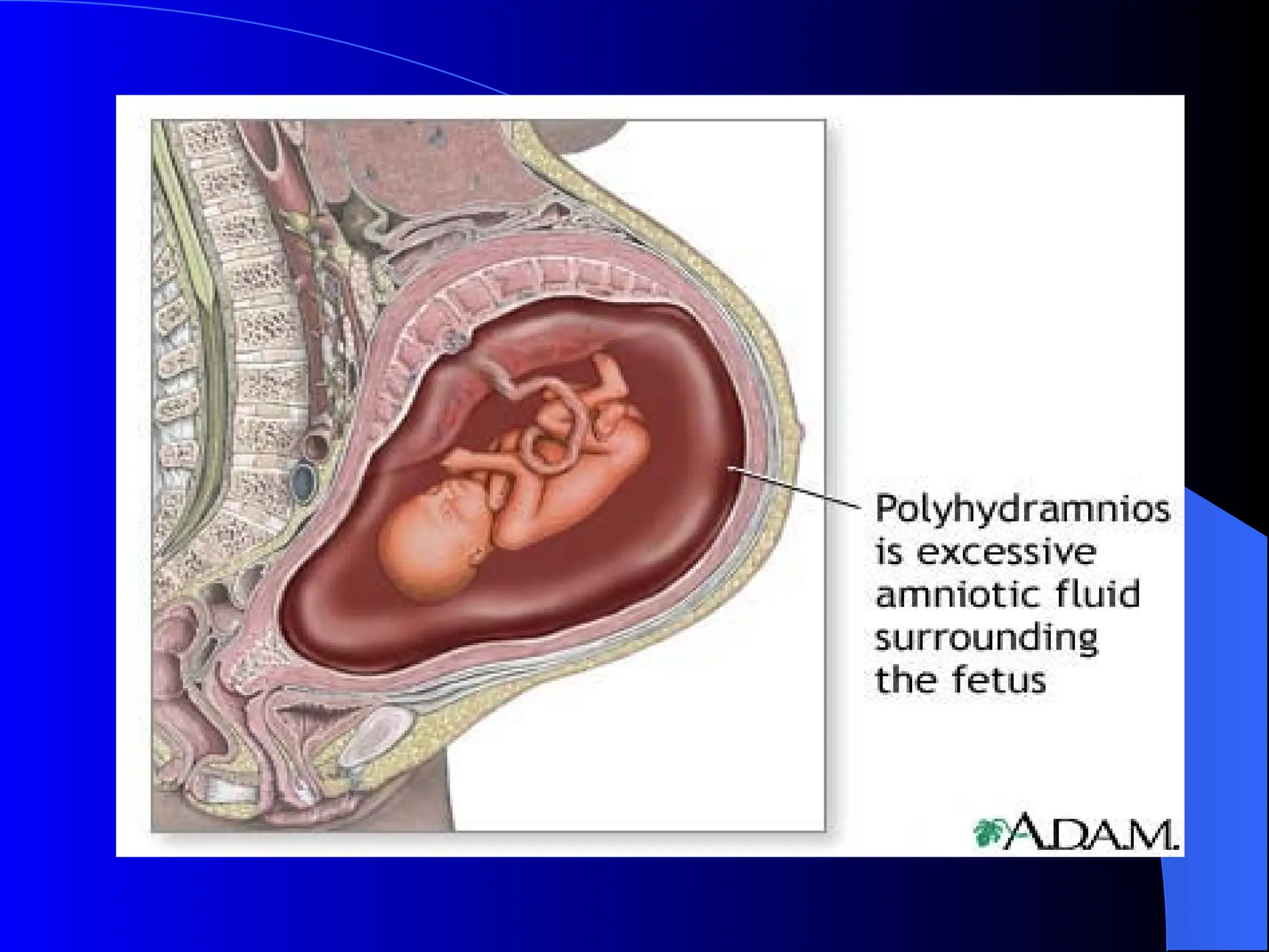 The document discusses the physiology, definitions, etiologies, symptoms, diagnosis, and treatment of polyhydramnios and oligohydramnios. Polyhydramnios is characterized by excess amniotic fluid, with potential causes including fetal anomalies and diabetes, while oligohydramnios involves insufficient amniotic fluid, often leading to severe fetal complications. Treatment approaches vary, with mild cases of polyhydramnios requiring little intervention and oligohydramnios often necessitating delivery or amnioinfusion.