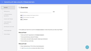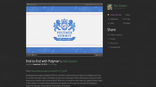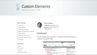 The document discusses the use of Polymer and Firebase for creating web components, which are reusable and encapsulated widgets for web applications. It highlights the benefits of web components and the Polymer starter kit for building production-quality web apps. The author emphasizes the importance of these technologies in enhancing web development and user experience.