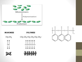 - Polymers can be classified by their structure (linear, branched, cross-linked), origin (natural vs synthetic), and properties (therm