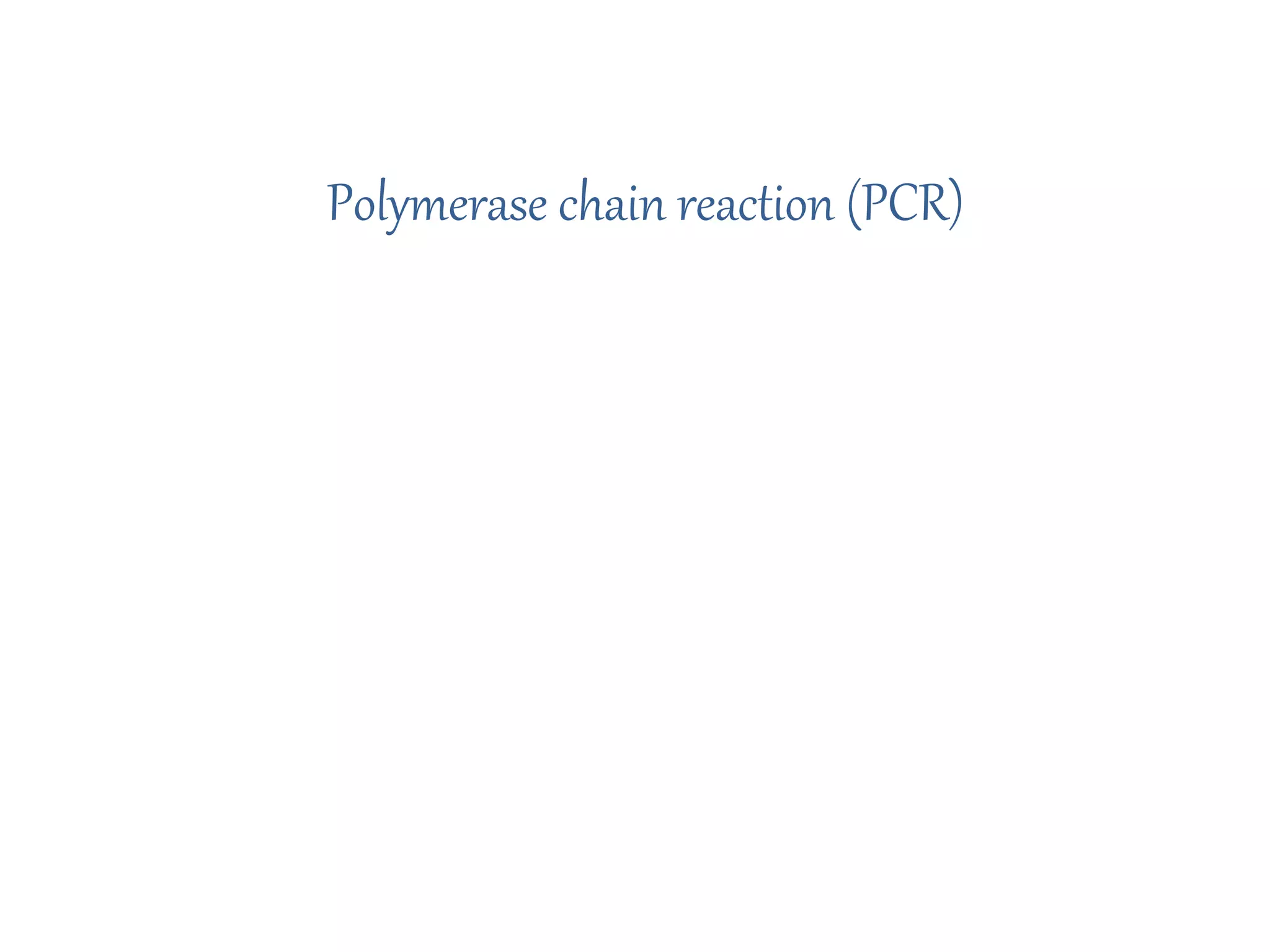 Polymerase chain reaction (PCR) is a technique developed by Kerry Mullis in 1984 that uses thermal cycling to amplify a specific DNA across several orders of magnitude, generating millions of copies of the target DNA segment. It involves repeated cycles of separating DNA strands through heating, annealing primers to the strands through cooling, and extending the primers with a thermostable DNA polymerase through heating. This allows for rapid and efficient amplification of targeted DNA regions.