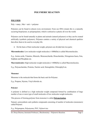 Dr. Divya Sharma,Assistant Professor / Biochemistry – Polymeric Reaction Page 1