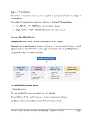 Dr. Divya Sharma,Assistant Professor / Biochemistry – Polymeric Reaction Page 2
